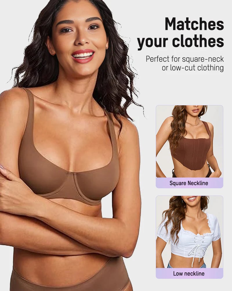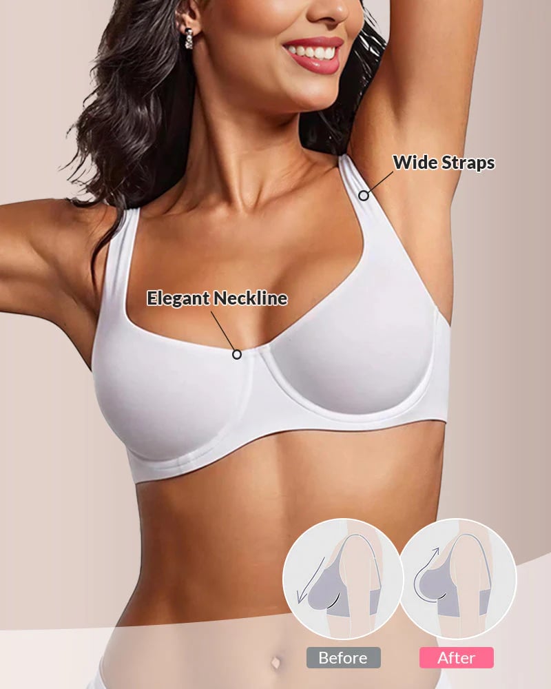 Crafted withΒ wide front strapsΒ that reduce pressure and aΒ narrow back closureΒ for a discreet, streamlined finish, this bra is made for both comfort and elegance. Adjustable straps let you customize your fit, while theΒ smooth back ensures invisibilityΒ under even fitted T-shirts or dresses.